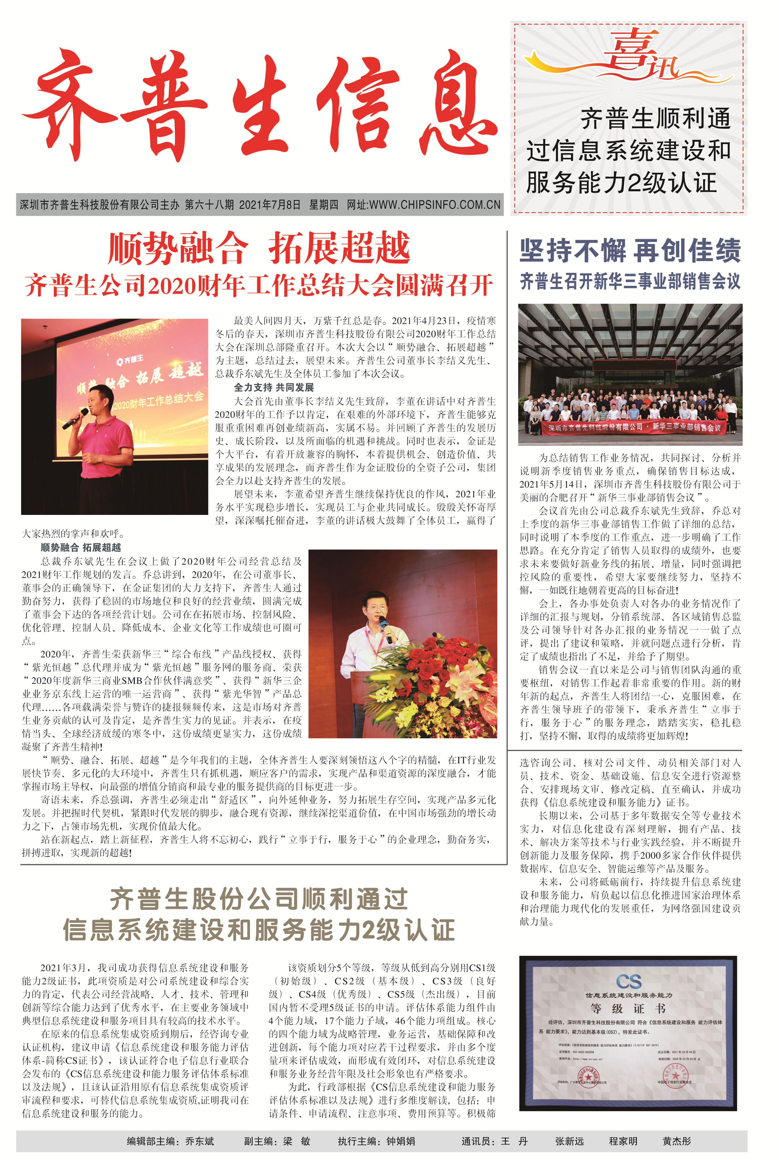 齊普生股份公司順利通過信息系統(tǒng)建設和服務能力2級認證
